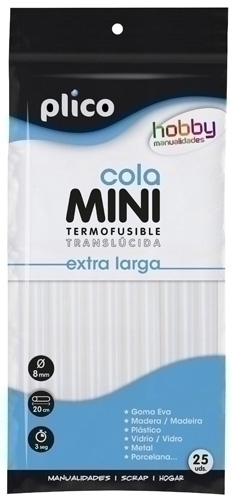 Cola Termofusible A Barra Plico Mini Translúcida Extra Llarga Blister De 25