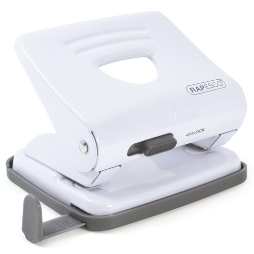 La perforadora metàl·lica Rapesco 825 posseeix robustes peces metàl·liques, mànec de precisió, talladora endurida, bloqueig del mànec i una base de metall amb safata de cautxú abatible de forma estàndard (per buidar) Finestra de personalització que permet una fàcil identificació. 2 forats amb capacitat per a 25 fulls, suficient per a la majoria d’aplicacions. 15 anys de garantia.