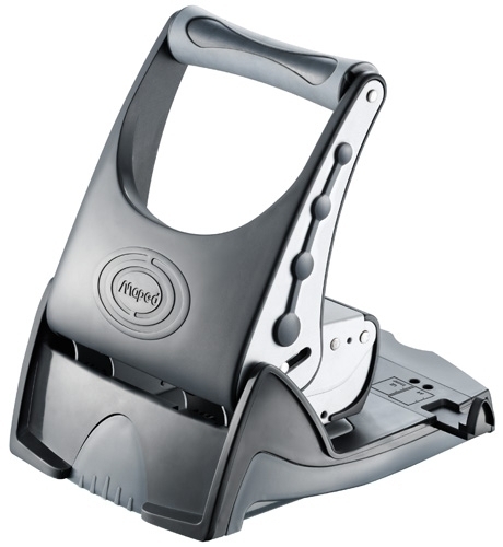 Trepant de dos punxons amb mecanisme antibloqueig del paper, nansa rotatòria ergonòmica i compartiment per a confetis de fàcil obertura. A més, compta amb un espai entre forats de 8 cm amb guia per a