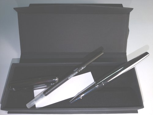 Roller amb cos metàl·lic lacat en colors brillants amb terminals cromats. Càrrega de roller INOXCROM®, amb punta d’acer inoxidable i bola de carbur de tungstè de 0,7 mm. Mides: 140 x ø 12 mm.
