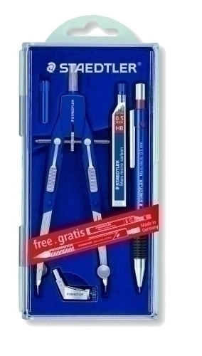 Compàs d?ajust ràpid mitjançant tecles i roda central de precisió. Potes articulades. Mina intercanviable amb tija Ø 4 mm. Agulla intercanviable. Diàmetre màxim del cercle 350 mm aprox. Longitud 170 mm. En estoig amb tapa transparent abatible. Conté compàs 552 amb tub de mines, adaptador universal.