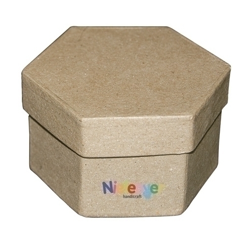 Pack de 10 caixes hexagonals de paper maixé rígid per pintar i decorar, amb diversos materials de manualitats. Mida: 78 x 50 mm.