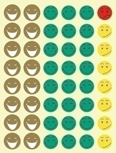 Gomets Mr. Smiley Ideal per a professors i pares per: Premiar o recompensar el nen per què ha fet alguna cosa correcta, ha entès la lliçó, per la superació de nous reptes o situacions difícils o per identificar l’encarregat del dia, el protagonista de l’aniversari, a qui ha fet les seves tasques diàries (berenar, deures, rentar-se les dents…), al nen que ha tingut un germanet…. És ideal per a nens perquè expressin el seu estat de ànim. Cada bossa conté 4 estils de cara diferents: 192 cara daurada de Ø 23 mm, 288 cara verda de Ø 20 mm, 84 cara groga de Ø 20 mm i 12 cara vermella de Ø 20 mm.