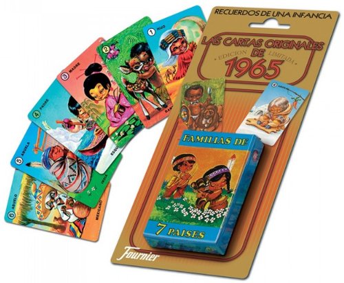 Un clàssic del naip infantil espanyol “naips famílies de 7 països”, en el seu format original del 1965: esquimals, tirolesos, xinesos, bantús… Un joc de taula amb imatges de les famílies més diverti