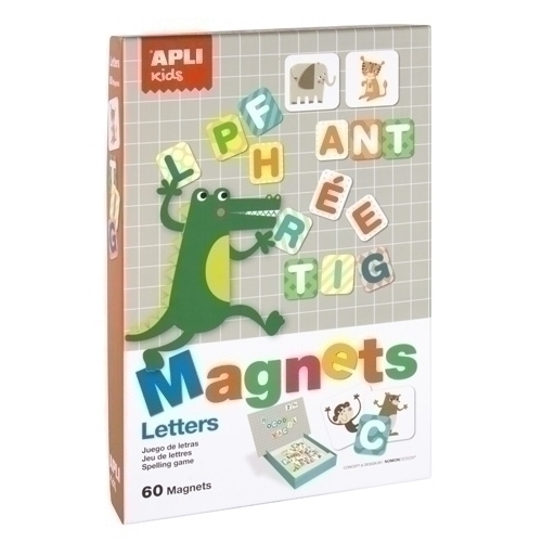 Joc magnètic per aprendre a escriure el nom dels animals que apareixen en diferents idiomes. Ideal perquè els nens s’iniciïn al món de l’escriptura i la lectura i comencin a crear paraules (contingut: 1 escenari de 280 x 180 mm i 60 fitxes magnètiques).