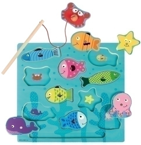 Pesca els diferents animalets del mar amb una canya magnètica. Relaciona tant les peces per la forma com pel dibuix ja que a l’interior del puzle trobaràs el mateix animalet dibuixat. Desenvolupa la capacitat d’atenció i precisió amb aquest fantàstic puzle magnètic de fusta.