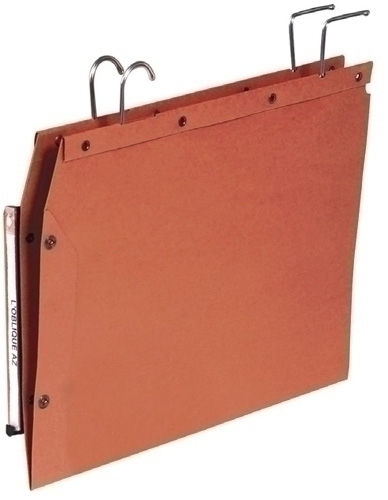Fabricada amb kraft taronja de 240 grams. Ganxos de filferro. Llom en V amb visor de 150 mm. Mides de la carpeta 250 x 350 mm.
