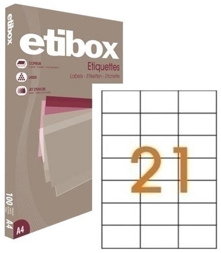 Etiquetes Adh.Impr. A4 Blanca Caixa 100H C. Rectes 70X42,4 Mm 2.100 Uts.