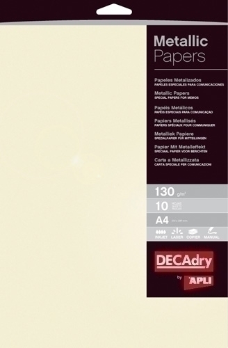 Paper metal·litzat en 130 grams per a inkjet, làser i copiadora que donaran un efecte metal·litzat als textos i imatges per ambdues cares del paper. Amb aquest tipus de paper podrem fer més atractives