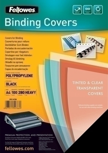 Tapa D’Enquadernar Fellowes A4 0,28 Mm Pp Op.Negro Caixa De 100