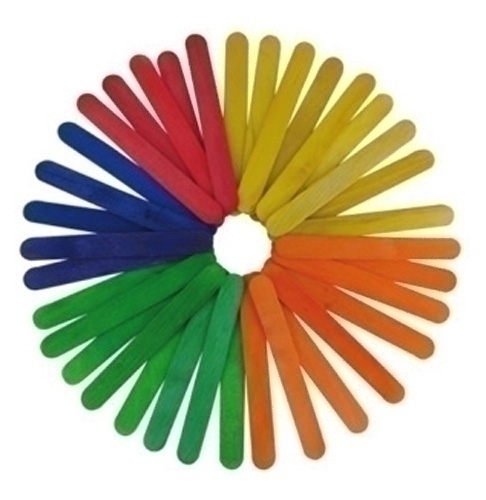 Palillos planos en madera de colores. Silueta perfecta. «Pack de 50 palillos tipo polo de 15 cm. de largo. «Pack de 50 palillos finos, de 11,4 cm. de largo.»Pack de 50 palillos con marcas, de 11,4 cm. de largo.